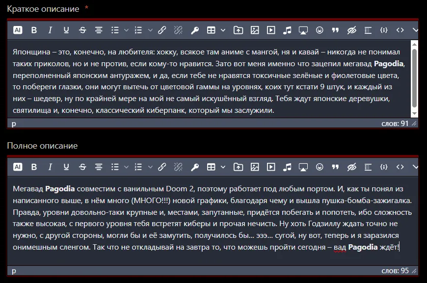 Хочешь написать обзор на какой-нибудь вад или мод для Doom, но твоим максимумом ранее были лишь посты в ВК или Телеге, и тебе откровенно лень разбираться в нюансах нашего редактора?
