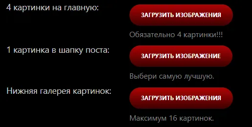 А дальше начинается волшебство: в зависимости от категории, в которую ты добавляешь пост, например, мегавады, ты видишь блоки оформления поста, а также форму загрузки файла. Тут, полагаю, всё понятно интуитивно, просто заполняй их, и пост сам сформируется.