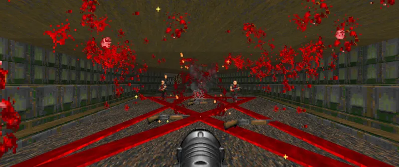 Чаще моды для Doom пишутся под современный и уже сильно прокаченный ZScript, а именно под порты Z-семейства: GZDoom, LZDoom и, с недавнего времени, UZDoom – здесь разработчики имеют широкий простор для творчества и, в общем-то, всё супер и все довольны. Но моддить можно не только под ZScript, например, мод Smooth Doom MBF21 создан, как понятно из названия, под стандарт MBF21, являющийся фактически накаченным стероидами BOOM-форматом, читай – ванилью (оригинал, в смысле). Модификация добавляет плавную анимацию оружию, монстрам, гильзы и, что самое крутое, кровищу, разливающуюся вёдрами, особенно когда палишь ракетницей или BFG в толпу импов или зомбаков. Ммм, вкуснотища…