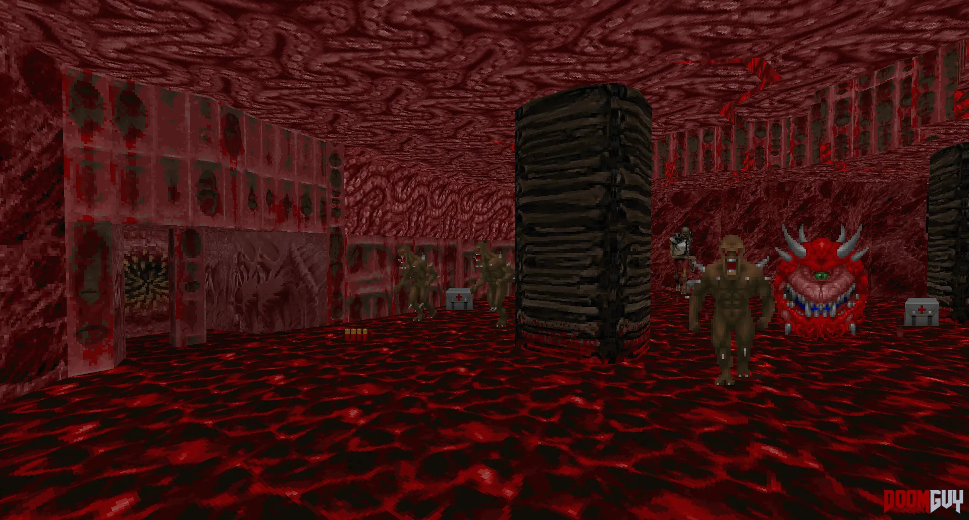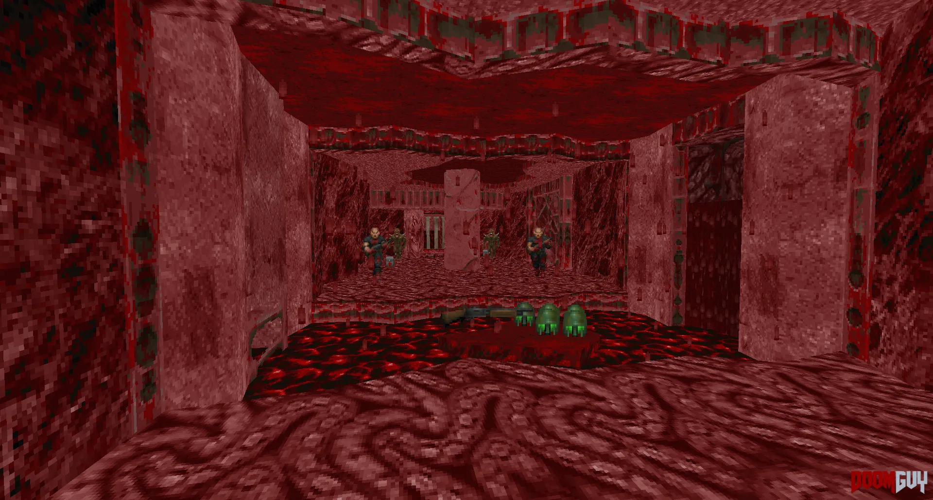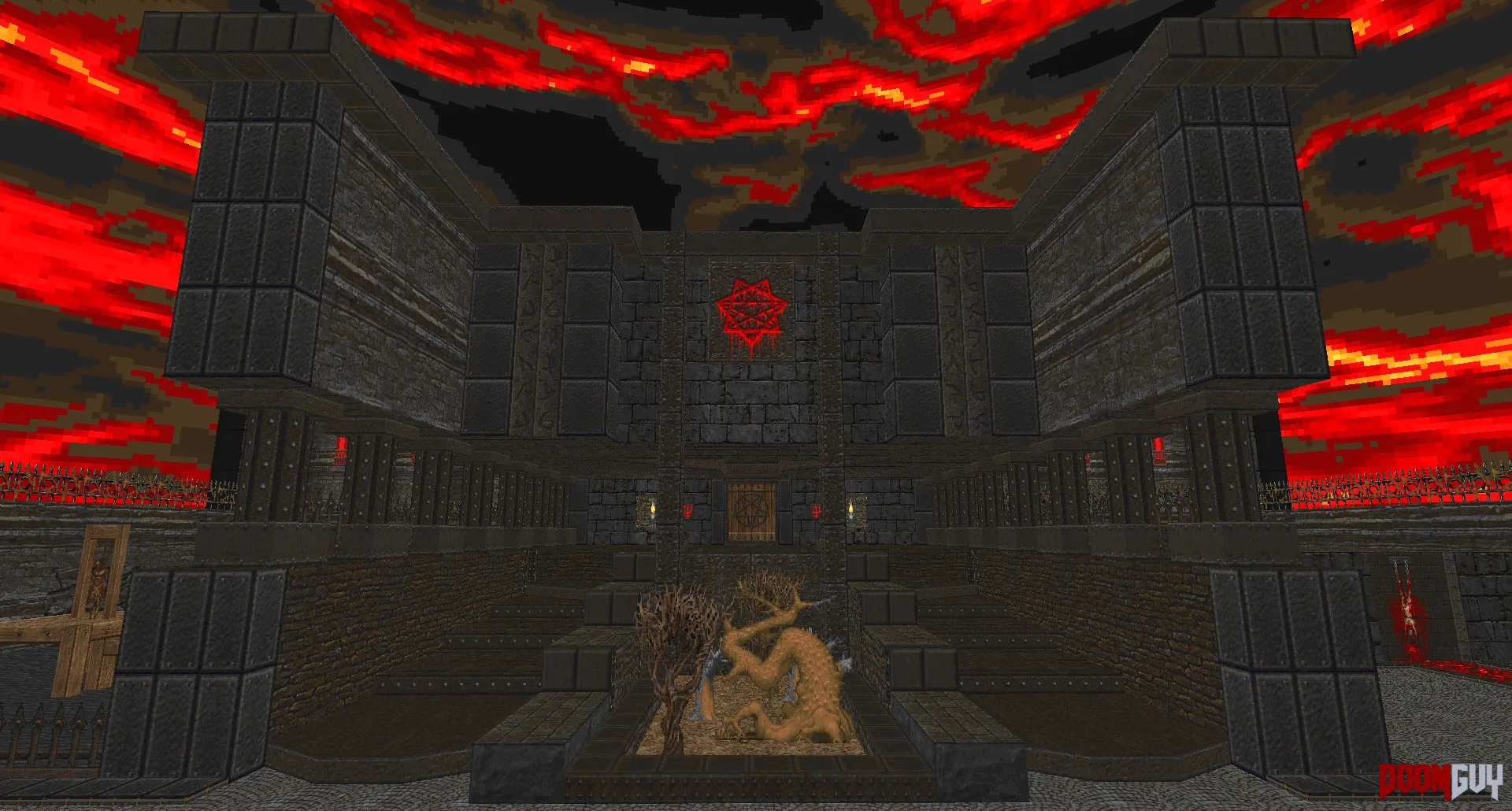 Вадпак Devoured Death представляет собой ад во всём своем проявлении. Сюжет довольно классический: ты проснулся в кровати собственного дома, за дверьми которого разверзся ад – такое могло бы случиться с каждым!.. Первый уровень – интрач; не пугайся отсутствию монстров, хотя, конечно, это и странно – побегай, полюбуйся архитектурой и новыми текстурками, а самый движ уже начнётся со второго уровня, где ты бегаешь по внутренностям какого-то гигантского демонического существа с переключателями в виде... зубастых анусов?